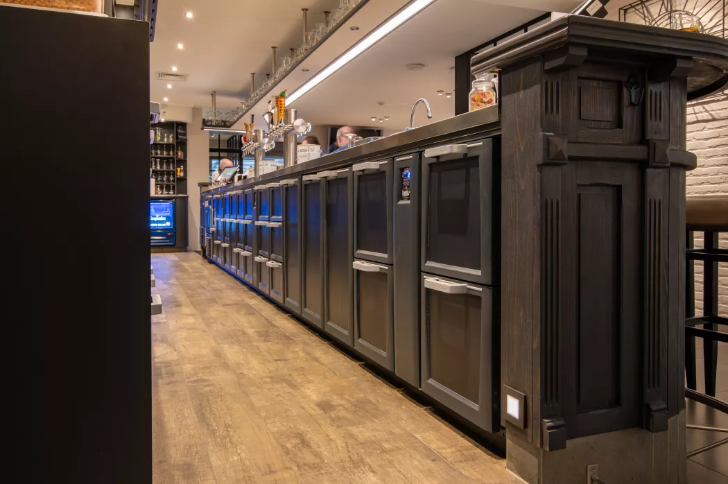 Inrichting van volledige bar voorzien van inox maatwerk en een passende tapinstallatie. Plaatsing van diverse barkoelingen en de gewenste ijsmachine. Een koelcel voor dranken en biervaten.